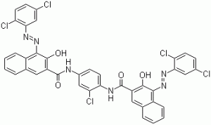 Pseudônimo em inglês: CIPigment Red 144; PR144; BRN vermelho cromoftal; 2-Naffalenocarboxamida, N, N '- (2-cloro-1,4-fenileno) bis [4 - [(2,5-diclorofenil) azo] - 3-hidroxi (4E, 4'E) -N, N' - (2-clorobenzeno-1,4-diil) bis {4- [2- (2,5-diclorofenil) hidrazinilideno] -3-oxo-3, 4-di-hidronaftaleno-2-carboxamida}; N- [2-cloro-4 - [[4- (2,5-diclorofenil) azo-3-hidroxi-naftaleno-2-carbonil] amino] fenil] -4- (2,5-diclorofenil) azo-3- hidroxi-naftaleno-2-carboxamida; BR Molecular Vermelho Grande