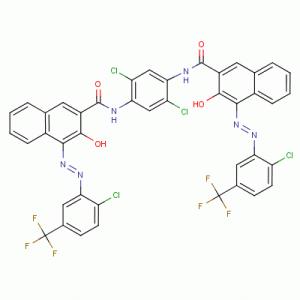 Alias em inglês: Pigmento vermelho 242; PR242; Sandorin Scarlet 4RF; 2-Naftalenocarboxamida, N, N '- (2,5-dicloro-1,4-fenileno) bis- [4 - [[2-cloro-5- (trifluorometil) fenil] azo] -3-hidroxi-3-hidroxi -; (4Z, 4'E) -N, N '- (2,5-diclorobenzeno-1,4-diil) bis (4 - {[2- cloro-5- (trifluorometil) fenil] hidrazono} -3-oxo- 3,4-di-hidronaftaleno-2-carboxamida); 4- [2-cloro-5- (trifluorometil) fenil] azo-N- [2,5-dicloro-4 - [[4- [2-cloro-5- (trifluorometil) fenil] azo-3-hidroxi-naftaleno -2-carbonil] amino] fenil] -3-hidroxi-naftaleno-2-carboxamida; N, N '- (2,5-dicloro-1,4-fenileno) bis [4 - [[2-cloro-5- (trifluorometil) fenil] fenil] azo] -3-hidroxinaftaleno-2-carboxamida] Número CAS: 52238 -92-3